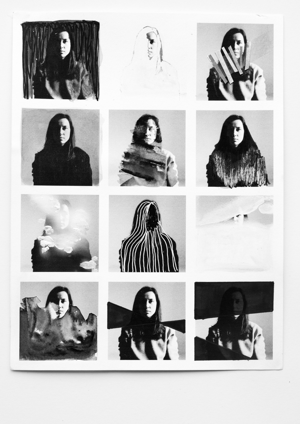 In this work, a single self-portrait is multiplied into a grid of